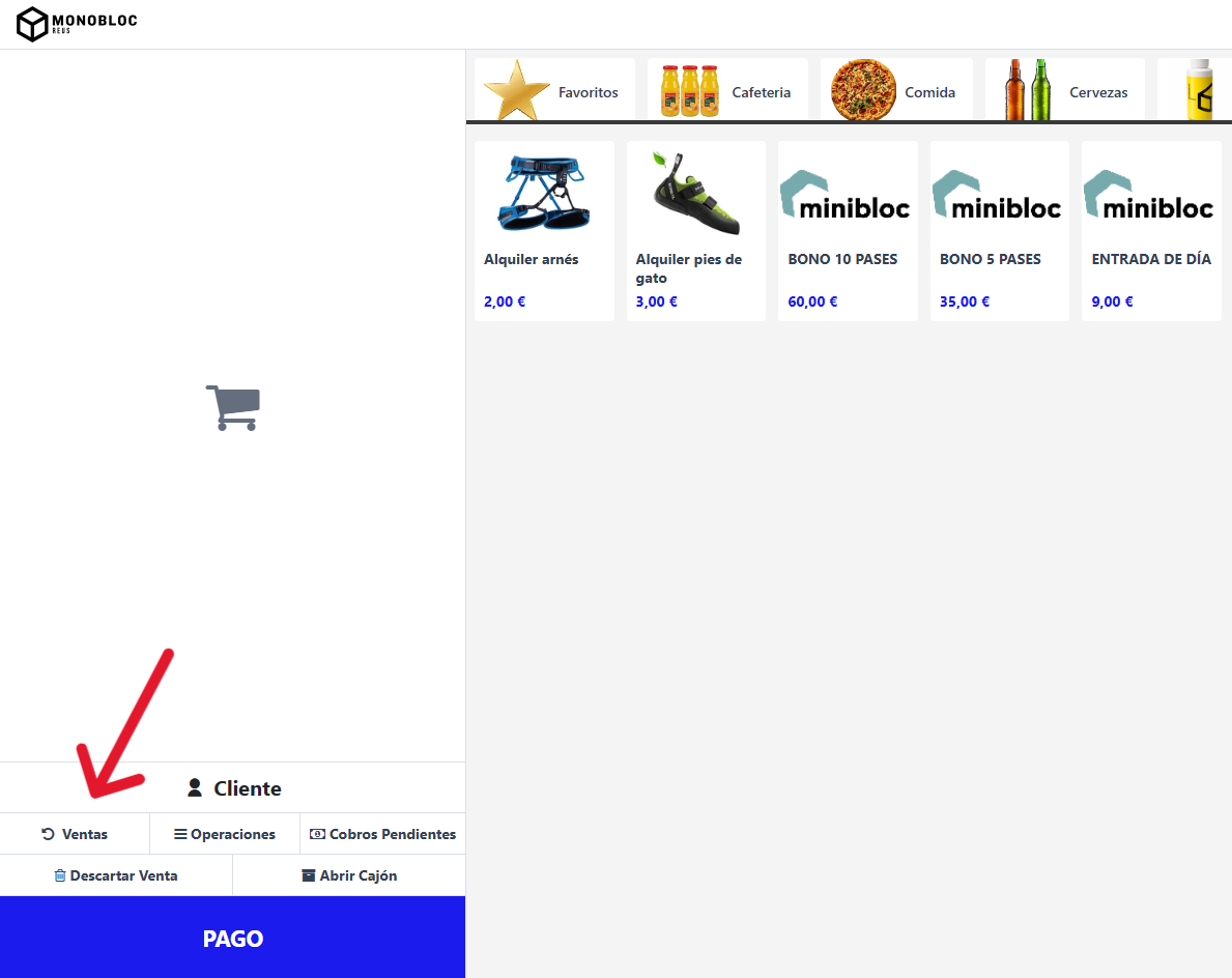 Para actualizar un método de pago de efectivo a tarjeta o viceversa, dentro del TPV presiona el botón de "Ventas", situado en la esquina inferior izquierda.