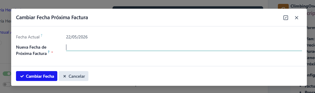 Para cambiar una fecha de próxima factura de forma manual, dirígete a la cuota en la que quieras cambiar la fecha.