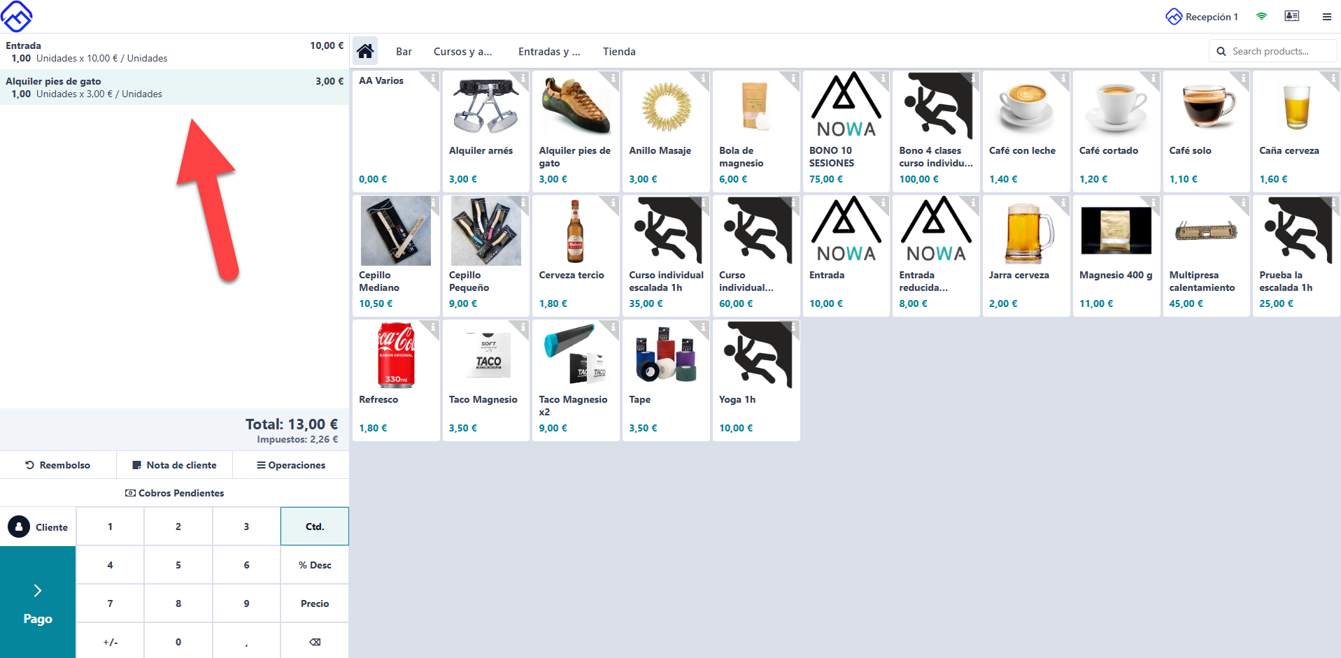 Para realizar una venta en TPV, selecciona los artículos que deseas vender. Conforme los selecciones, aparecerán a la izquierda y podrás ver el número de unidades del artículo y su precio